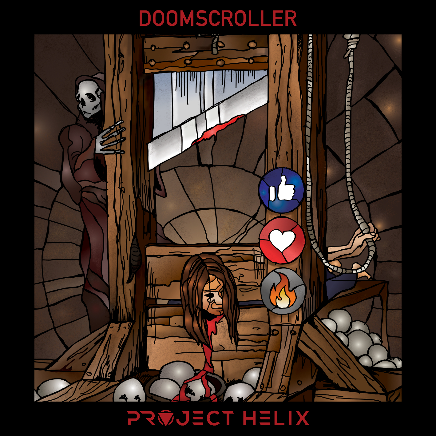 PROJECT HELIX verkörpern diese dystopische Vision. Wir stehen für massiven, groovebetonten Metalcore, der nichts mit den Quasi-Popbands des Genres zu tun hat, sondern euch pure Aggressivität, raue Vocals und derbe Riffs um die Ohren haut. Songs wie "Children Of Peace", "Digital Slaves" oder "Sulfur Skies" sind dafür das beste Beispiel: mahlende Riffs, mächtige Grooves – und gleichzeitig verleiten abrupte Breakdowns jedes Publikum dazu, sofort abzumoshen! Gebt euch die Videos auf Youtube oder hört euch die Songs über die gängigen Streaming-Plattformen an und reißt die Bude ab! Inklusive Ameisenfarm, versteht sich!